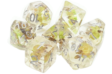Old School 7 Piece DnD RPG Dice Set Infused Green Flower - State of Comics Old School 7 Piece DnD RPG Dice Set Infused Green Flower - State of Comics