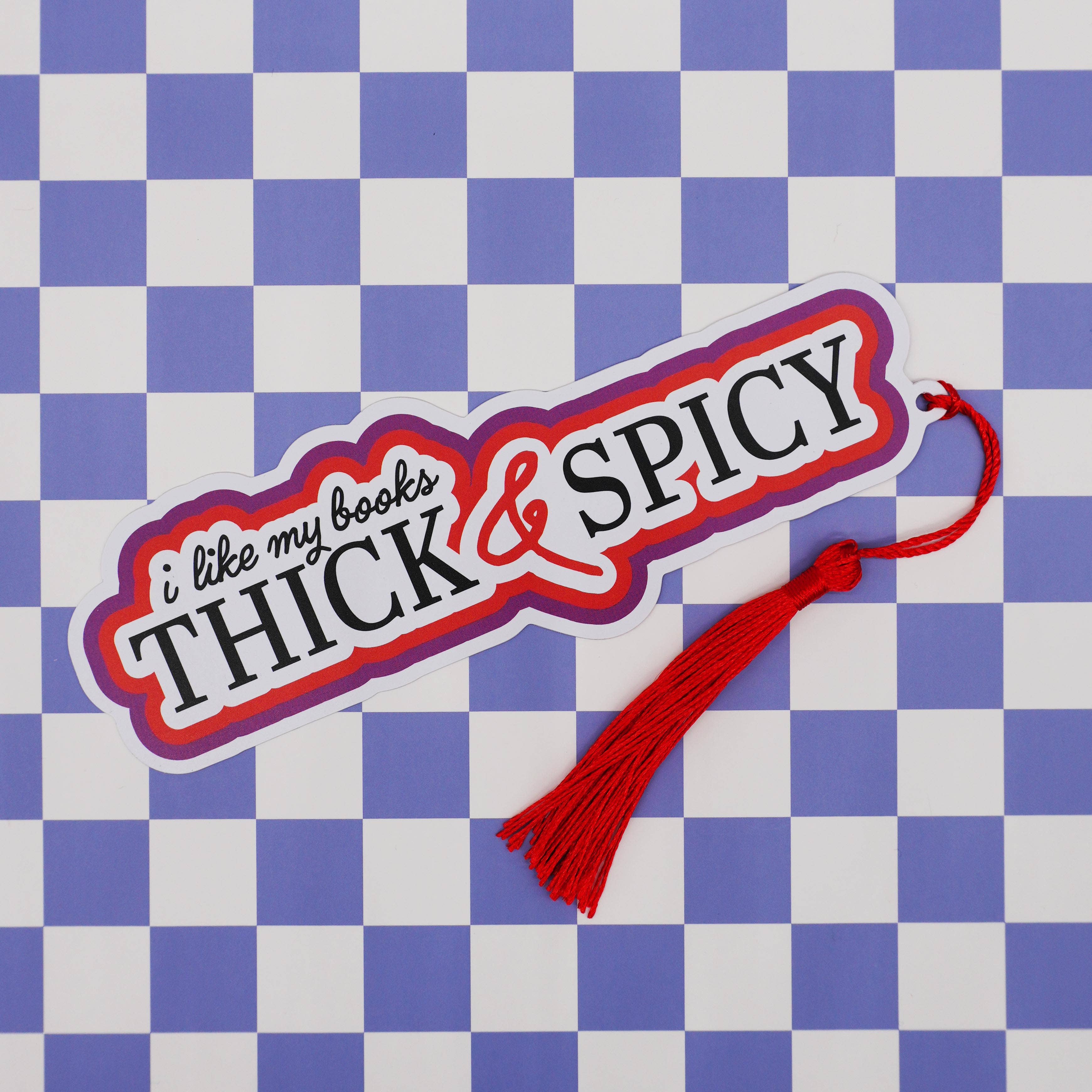 Make your reads even spicier with our “I like my books thick & spicy” bookmark. This reading accessory is for the book girlies who like their main characters and books the same way: thick and spicy. It’s perfect for any reader who appreciates all the spice. Each bold design is complete with a metallic, silk tassel. We crafted our bookmarks from sturdy, water-resistant PVC material, so they're able to withstand frequent use as you make your way through your TBR. Each bookmark comes inside a clear, plastic sleeve for easy and safe storage when you’re between books—LOL. Like that ever happens!