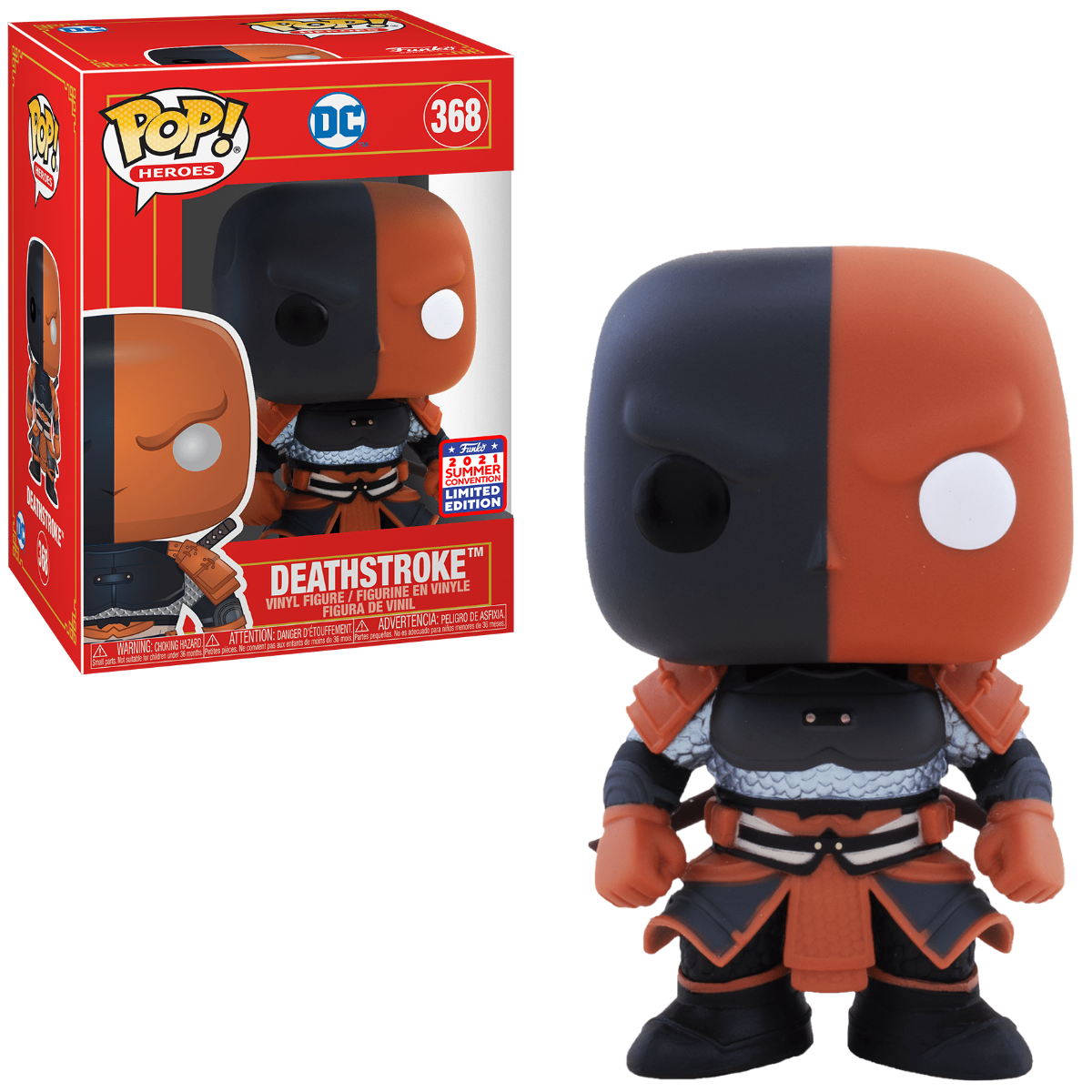 This Deathstroke Pop! Vinyl Figure measures approximately 3 3/4-inches tall. Comes packaged in a window display box.
