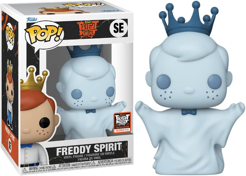 This Freddy Spirit Pop! Vinyl Figure measures approximately 3 3/4-inches tall. Comes packaged in a window display box.