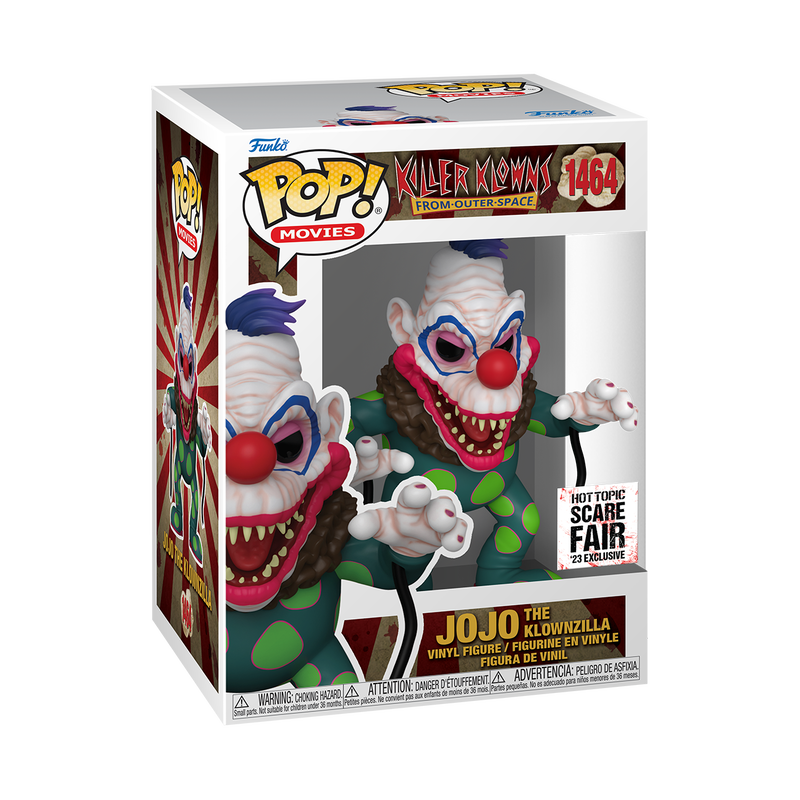 This Jojo the Klownzilla Pop! Vinyl Figure measures approximately 3 3/4-inches tall. Comes packaged in a window display box.