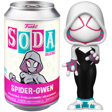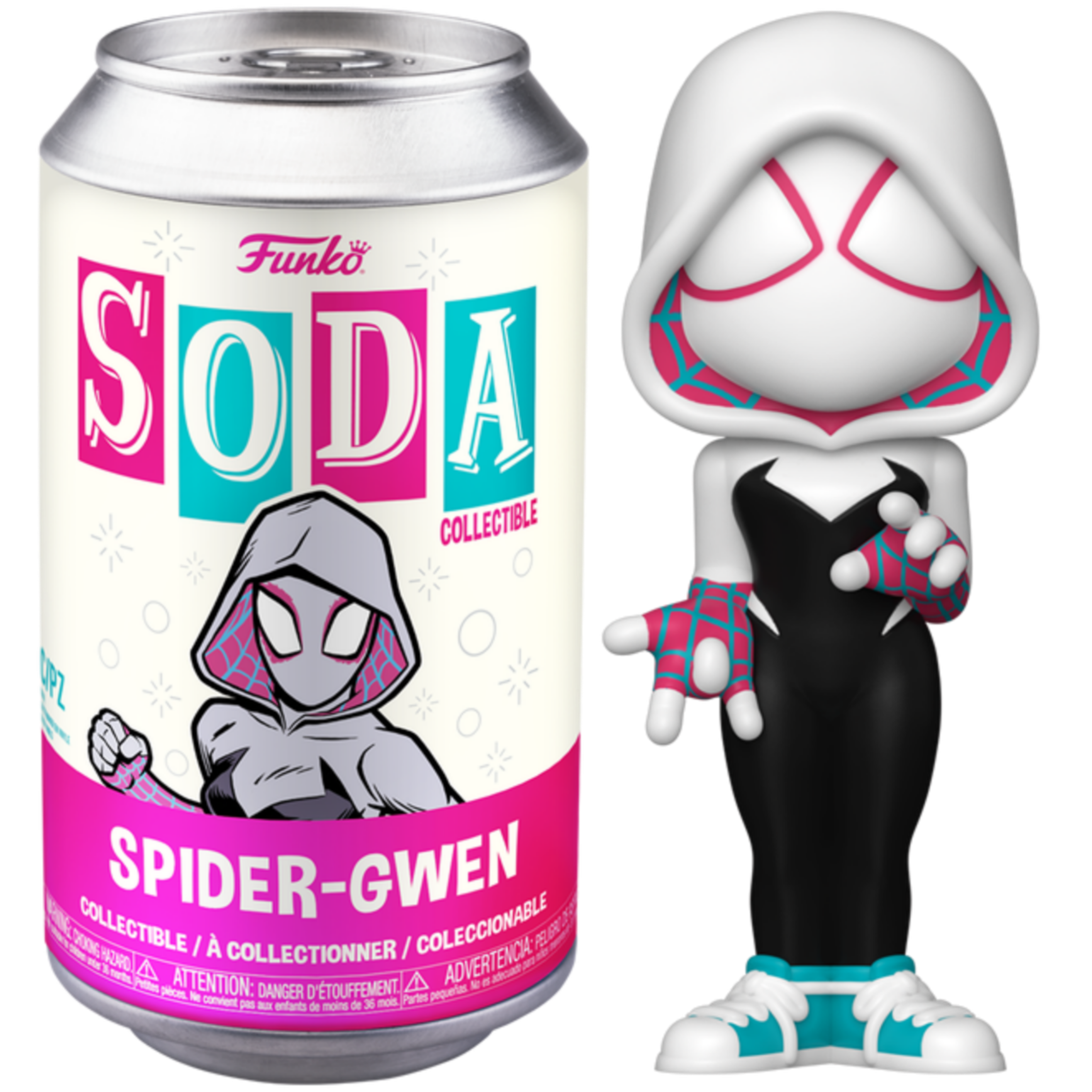 This Spider-Gwen Pop! Vinyl Figure measures approximately 3 3/4-inches tall. Comes packaged in a Soda Can.