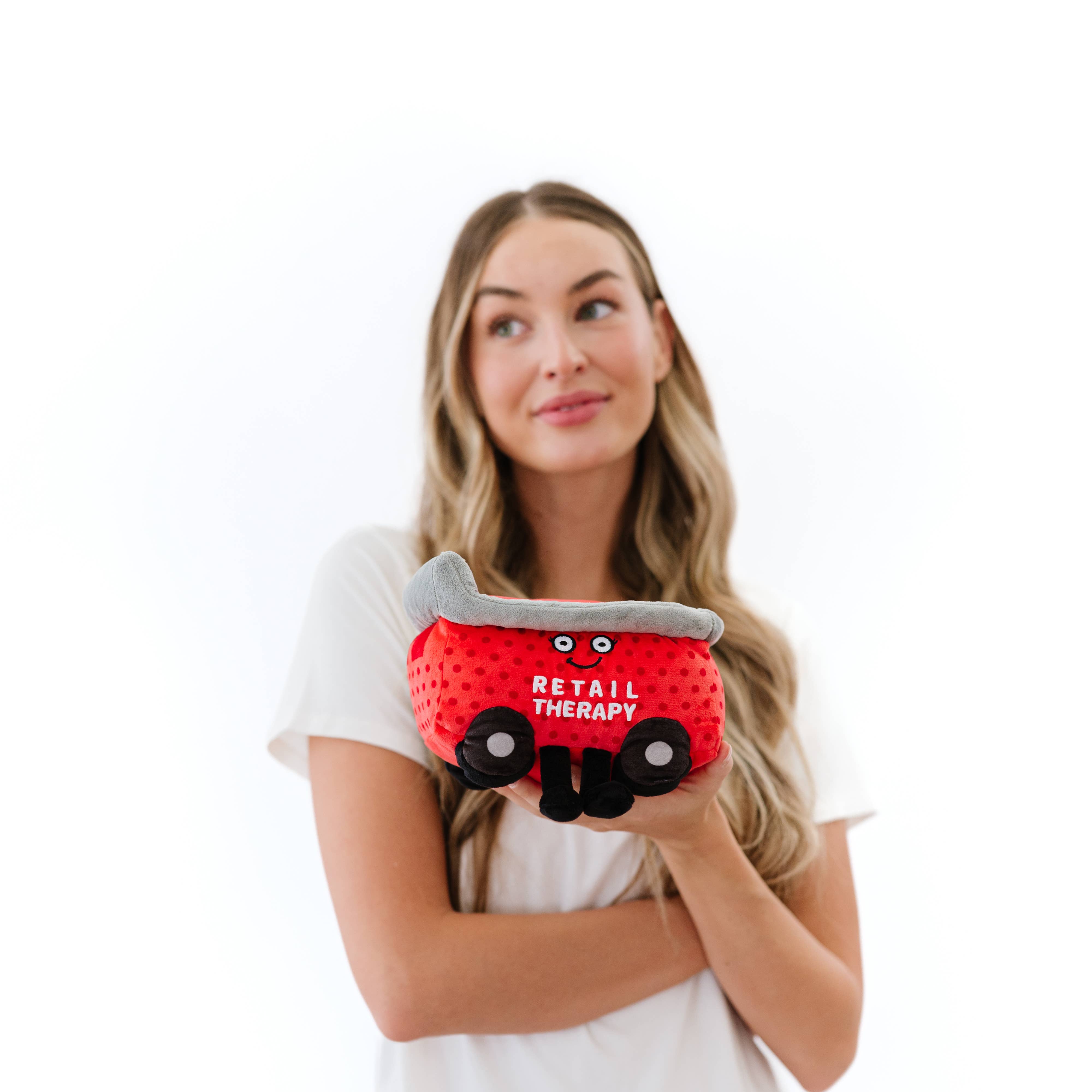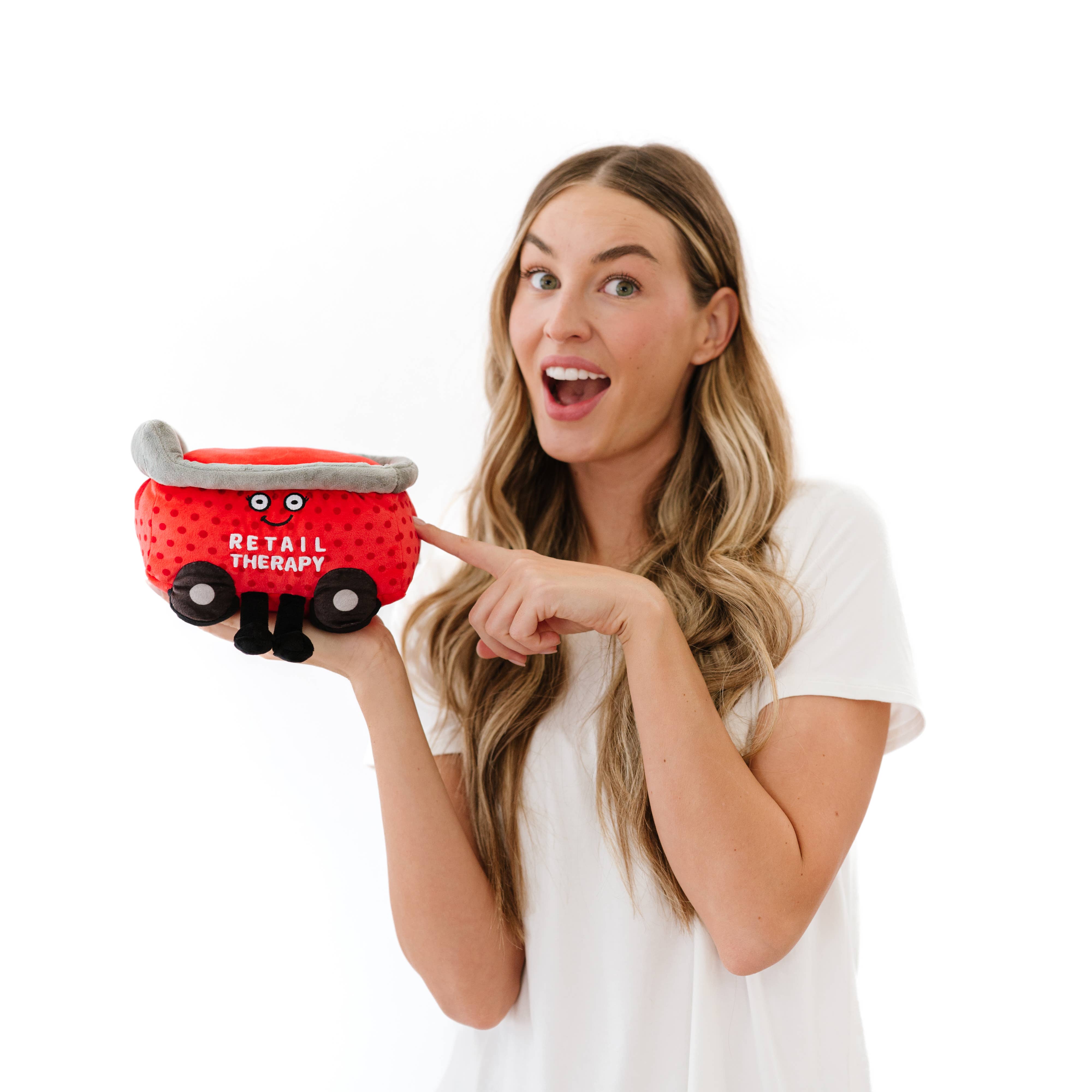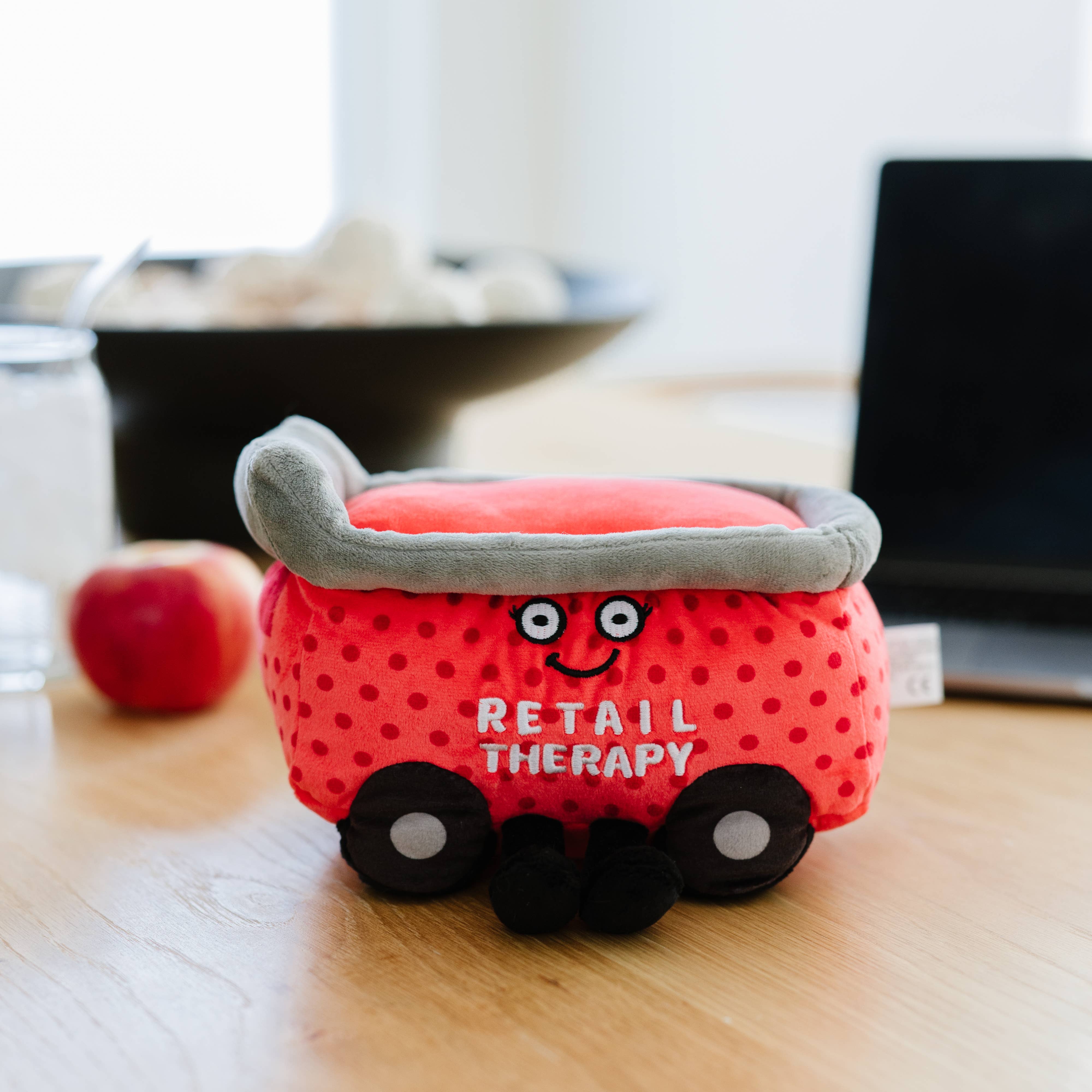 This Punchkin firmly believes that the cure for any hard day is a little retail therapy. She’s not a shopaholic…she’s just using her returns to fund her next shopping trip. It’s money already spent! (#girlmath) This happy plushie is perfect for the woman who spends Saturday mornings browsing the aisles with a Starbies latte in hand. This plush is ideal for children, collectors, or anyone who loves cozy and fun décor. A great addition to gift shops and toy stores!
