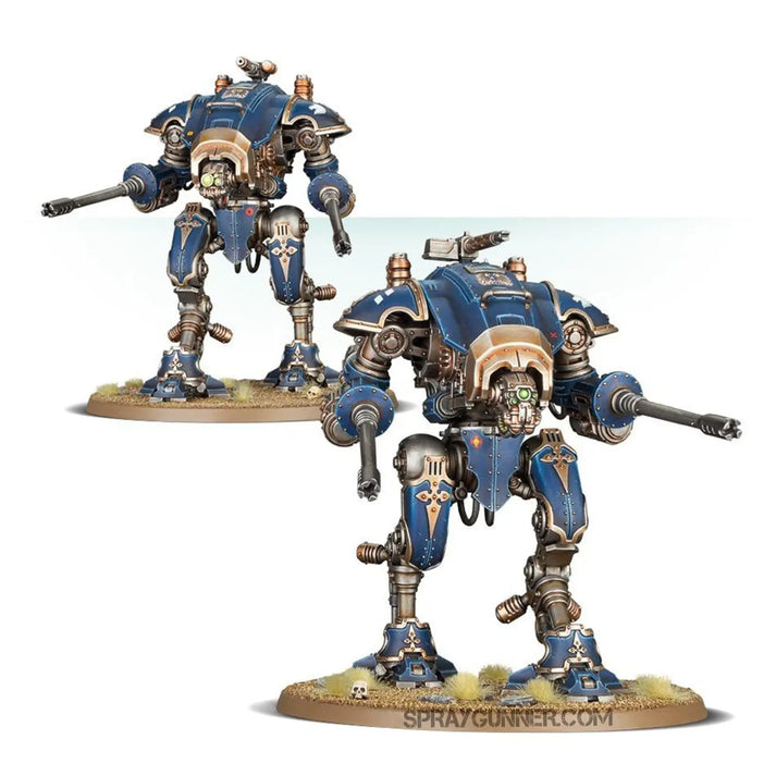 Small and agile compared to their lumbering kin, Armiger-class Knights are still war machines of incredible power. Piloted by young squires or lowborn pilots, Armigers act as mobile support and outriders to keep larger Knights from being surrounded, receiving commands from their Noble lords through the Helm Mechanicum. Among these nimble engines, Armiger Helverins are mobile weapons platforms that can shatter an enemy assault in seconds, laying down blistering hails of heavy fire with their twin autocannons to harry heavy infantry and light vehicles alike.