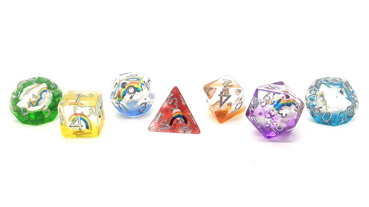 Old School 7 Piece DnD RPG Dice Set Infused 7 Color Rainbow - State of Comics Old School 7 Piece DnD RPG Dice Set Infused 7 Color Rainbow - State of Comics
