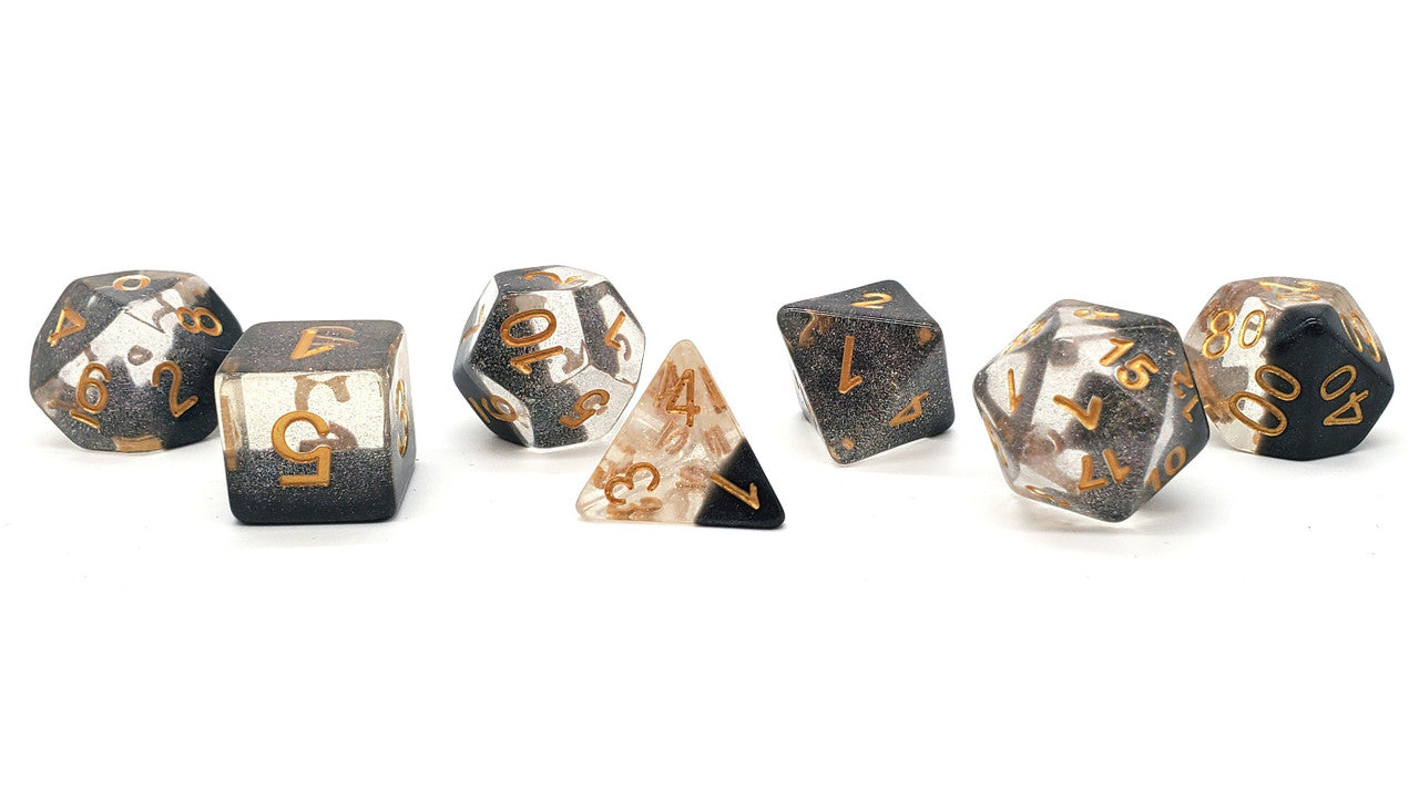 Old School 7 Piece DnD RPG Dice Set Luminous Black Crystal - State of Comics Old School 7 Piece DnD RPG Dice Set Luminous Black Crystal - State of Comics