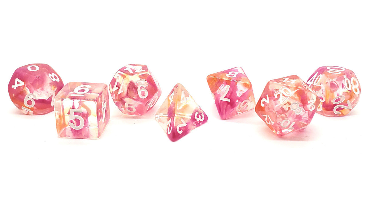 Old School 7 Piece DnD RPG Dice Set Orange & Pink