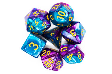 Old School Dice & Accessories carries a wide range of premium & specialty dice. Each fabulous set is hand checked to make sure that you are getting the highest quality. Made of a strong resin blend, these dice have colors that are clear and bold. Our dice sets work great for RPG's such as DnD, Pathfinder, Call of Cthulhu and other games. Each RPG 7-dice set includes all of the standard polyhedral dice.