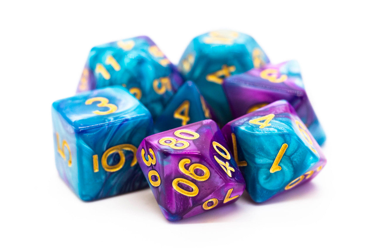Old School 7 Piece DnD RPG Dice Set Vorpal Teal & Lavender w/ Gold