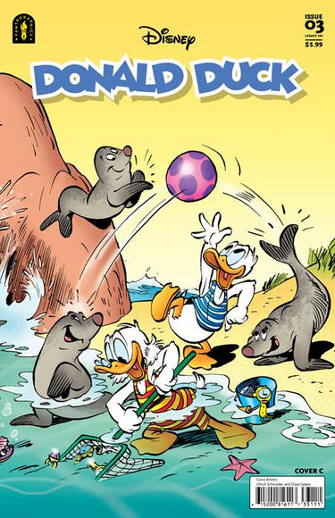 In “Call of the Wild Sea,” Donald Duck faces mind-numbing nightmares of a terrible tsunami—and Ludwig Von Drake says they won't stop till Donald proves himself a master sailor! But Donald left the Navy in disgrace… and only the mysterious Captain Windblower knows the way to redemption! Then in “Two-Bit Tycoons,” see the secret origin of an all-new rivalry: when bombastic Euro-billionaire Velma Vanderduck challenges both Scrooge and Flintheart Glomgold, Donald gets dragged to Amsterduck to help save the McDuck name!