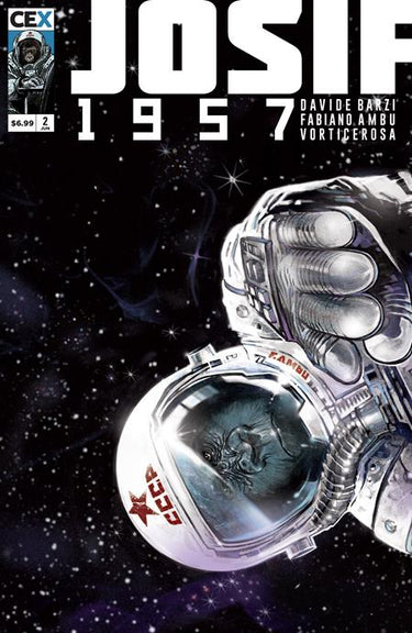 Josif, the first gorilla in space, is wreaking absolute havoc in low orbit, and no one knows how to stop him! So U.S. President Dwight D. Eisenhower knows just what to do -- he blasts into space himself to handle the matter! It's a zero-gravity battle between the United States President and the Soviet Gorilla, at the height of the Cold War! Featuring a 1 in 10 variant homage to Blade Runner by Italian super-star Fabiano Ambu!