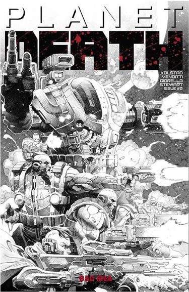 "The comic that shattered all the records is now back in print! Blockbuster screenwriter Derek Kolstad, creator and writer of the internationally acclaimed, box office dominating motion picture franchise JOHN WICK, New York Times best-selling writer Robert Venditti (Superman ‘78, Green Lantern), with visionary artist Tomás Giorello (Star Wars, Conan) and ten-time Eisner Award-winner Dave Stewart (Star Wars, Hellboy) have combined forces to bring you this essential first chapter in a groundbreaking new sci-fi epic. Millions of miles from home, hundreds of ships descend into the stormy atmosphere of a hostile frozen world. On board, an army of resolute men and women brace for the coming assault. They are an invasion force, on an impossible mission — destroy the devastating enemy weapon garrisoned below. Corporal Scott and his battalion are in the vanguard but the human forces are no match for their brutal alien adversaries. Scott’s battalion is dead within moments. He is its lone survivor. The landing force annihilated, the battle is lost. Against overwhelming odds, Scott dares the unthinkable — cross behind enemy lines, survive the lethal landscape, evade capture by ruthless enemies, resist natural predators, face human deserters and finish the mission singlehandedly. Locked in his suit of full combat battle armor, sustained only by what he can carry, and driven by Earth’s wrath, Scott must do by himself what an entire army could not. Destroy the weapon. Return home. PLANET DEATH #0 is the must-read lead-in to July’s 40-page prestige format PLANET DEATH #1.