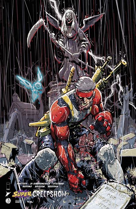 HIS ULTIMATE CREEPSHOW EXPERIENCE IS AN ABSOLUTE MUST-READ!    Join the Creep in a special celebration of superheroes new, old, and very, very disturbed in what’s possibly already being called the most important comic book of the year!    First, Dan Watters (Batman: Dark Patterns, Destro) and Carmine Di Giandomenico (Absolute Superman) plan a funeral for the world’s greatest superhero, but his return might be the worst thing that could ever happen!    Then, Ryan Stegman (X-Men) and Riley Rossmo (The Moon is Following Us) introduce the world to the Grave Ghost, a superhero who must solve the case of...his own death!    Finally, Ed Brisson (Wolverine: Old Man Logan) and Andrei Bressan (Dark Ride) unleash the chilling tale of what happens when a super serum gets injected into someone who may be more super VILLAIN than hero.