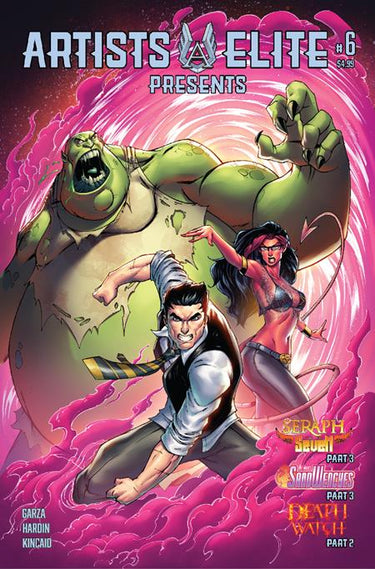 Artists Elite Presents #6 continues 3 stories! Everything's pho'qd in Part 3 of Alé Garza's (Teen Titans) SandWenches as they find themselves in a pit of EwwwDon with their only hope for survival being their Buxom Buddies?! Then in Part 2 of Chad Hardin's Death Watch, Ryner arrives to investigate a small village being plagued by the undead. Plus Part 3 of Ryan Kincaid's (Persuasion) Seraph and the Seven, where the dire fate of humanity continues as the fight with Gluttony is taken to the streets of New York where Seraph meets another sin, Lust.