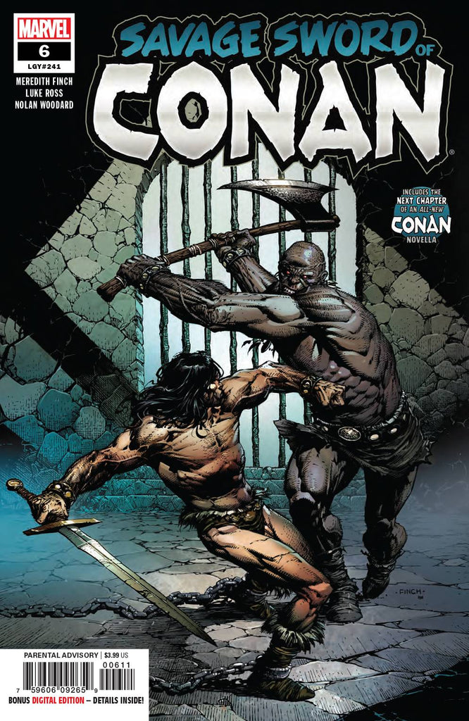 THORFEL'S REVENGE FROM BEYOND THE GRAVE! • Brought to you by the creative team of Meredith Finch and Luke Ross- this all-new self-contained story springs from classic Conan mythology as Conan is led to death by the son of man he had wronged in the past. But stripped of his weapons- his strength- and even his wits- Conan will have to dig deep if he wants to live to see the dawn! • Plus: Continuing the all-new Conan novella 'THE SHADOW OF VENGEANCE'! Parental Advisory