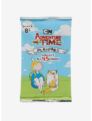 Play in the Land of Ooo with the return of Adventure Time Playpaks! Based on the beloved Cartoon Network show, each five-card pack is filled with brave and adventurous characters and endless fun. Adventure Time Playpaks: Series 3 feature a 18-card Base Set showcasing a popular character on each card and five uniquely-themed Chase Sets: foil Lava Cards, Sticker Cards with Puzzle Backs, Standees, Scratch 'n' Sniff Cards, and Temporary Tattoos