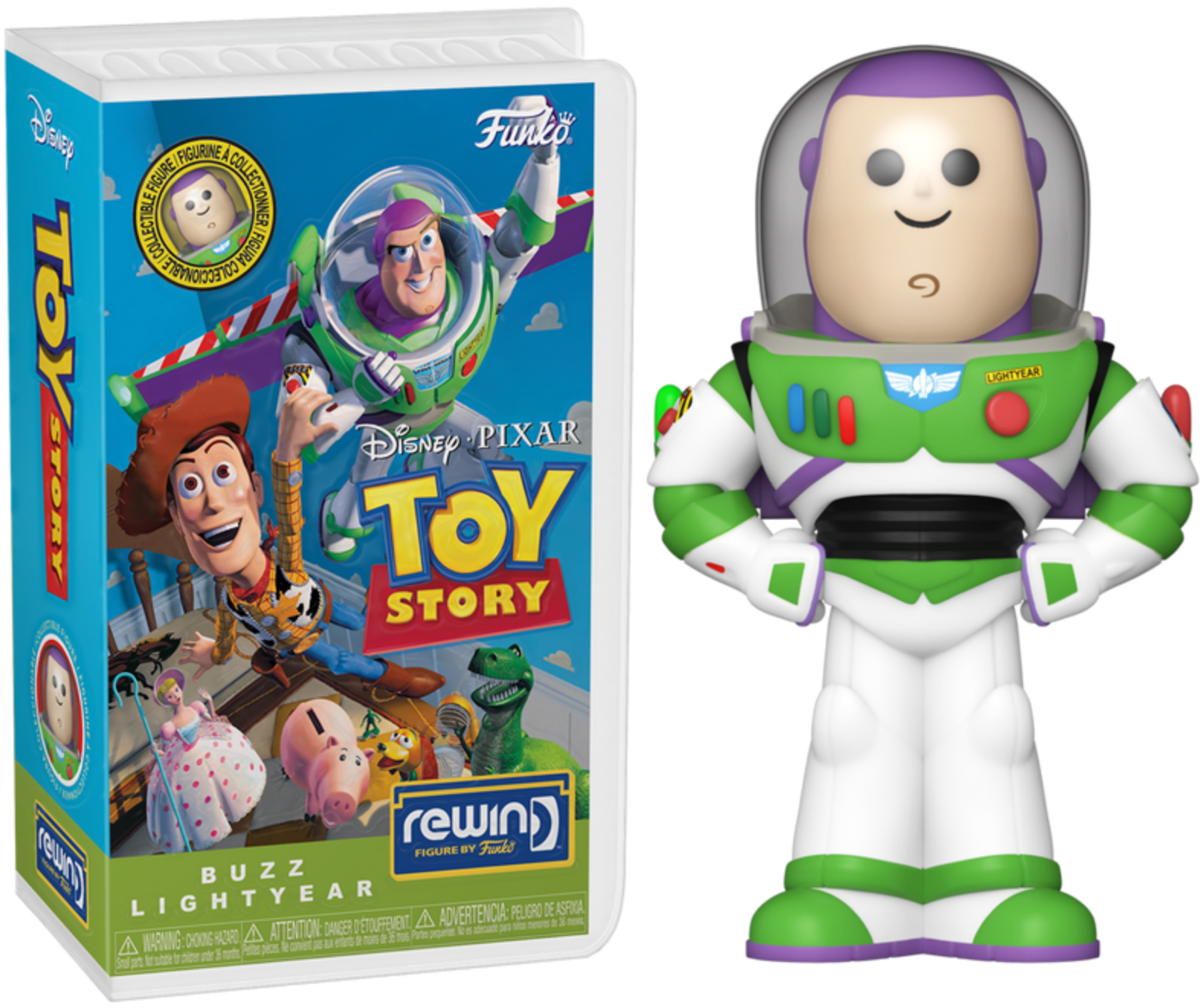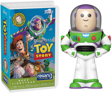 This Buzz Lightyear Rewind Vinyl Figure measures approximately 3 3/4-inches tall. Comes packaged in a VHS Style Box.