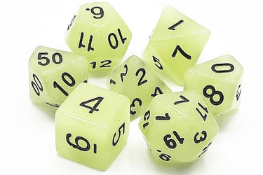 Old School 7 Piece DnD RPG Dice Set Glow Dice Grey