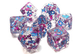 Old School 7 Piece DnD RPG Dice Set Infused Red Stars with Blue - State of Comics