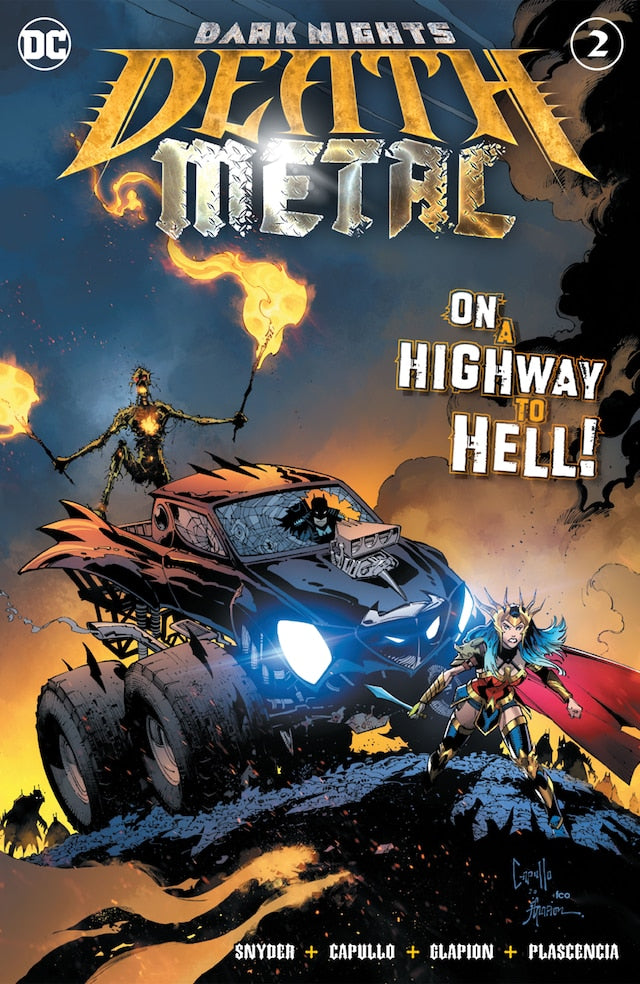 Get ready to scream! Wonder Woman roars across the horrifying Dark Multiverse landscape in the world's most demented monster truck, with Swamp Thing riding shotgun! The two arrive at the ghoulish cemetery base of Batman and his army of zombies, but can the former friends stand each other long enough to form a plan and take back the planet? Plus, what's Lobo doing in space? Don't miss the second chapter of the wildest ride in the DC Universe, from the epic team of writer Scott Snyder and artist Greg Capullo!