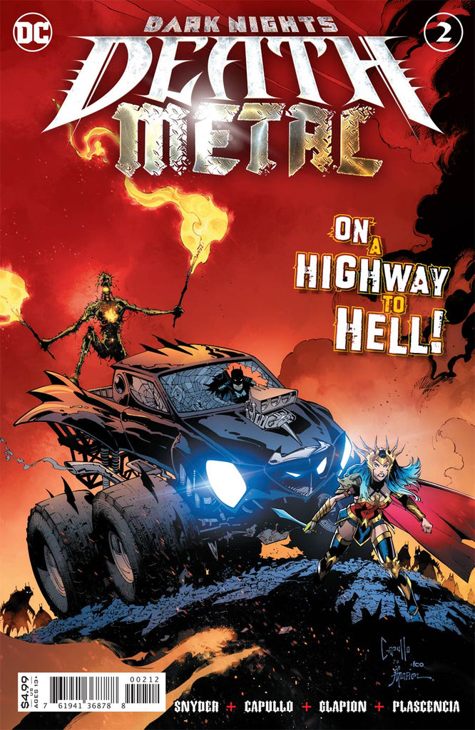 Get ready to scream! Wonder Woman roars across the horrifying Dark Multiverse landscape in the world's most demented monster truck, with Swamp Thing riding shotgun! The two arrive at the ghoulish cemetery base of Batman and his army of zombies, but can the former friends stand each other long enough to form a plan and take back the planet? Plus, what's Lobo doing in space? Don't miss the second chapter of the wildest ride in the DC Universe, from the epic team of writer Scott Snyder and artist Greg Capullo!