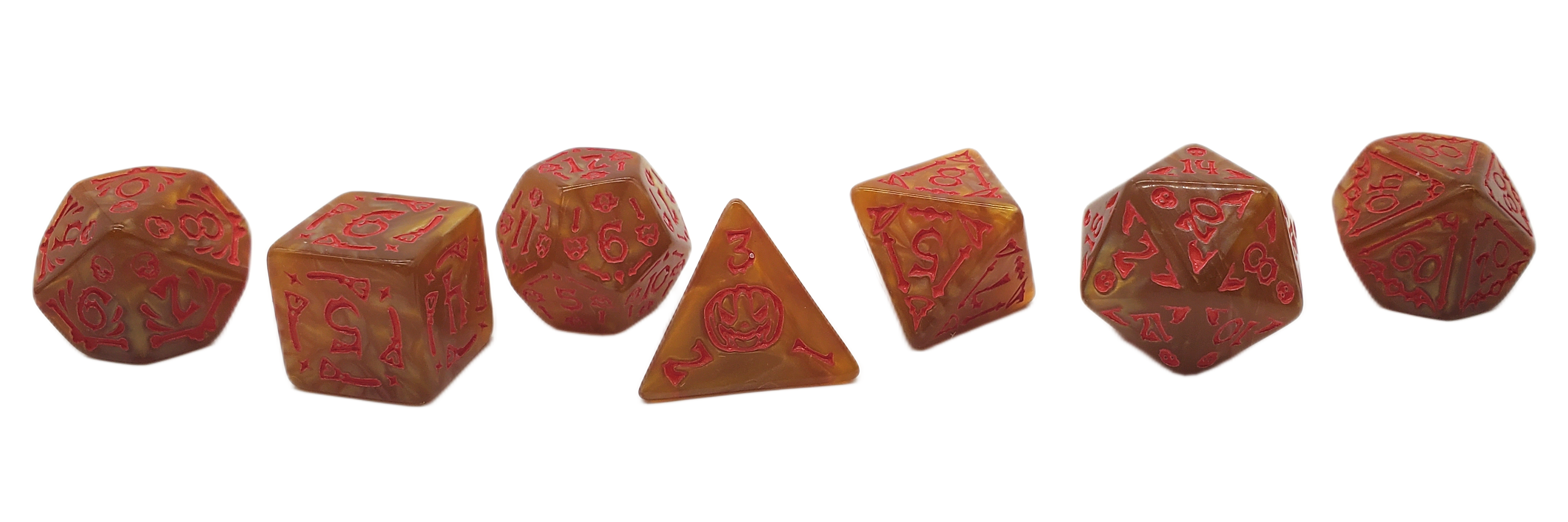 DnD RPG Dice Set: Rune Dice - All Hallows Eve - Gold w/ Red