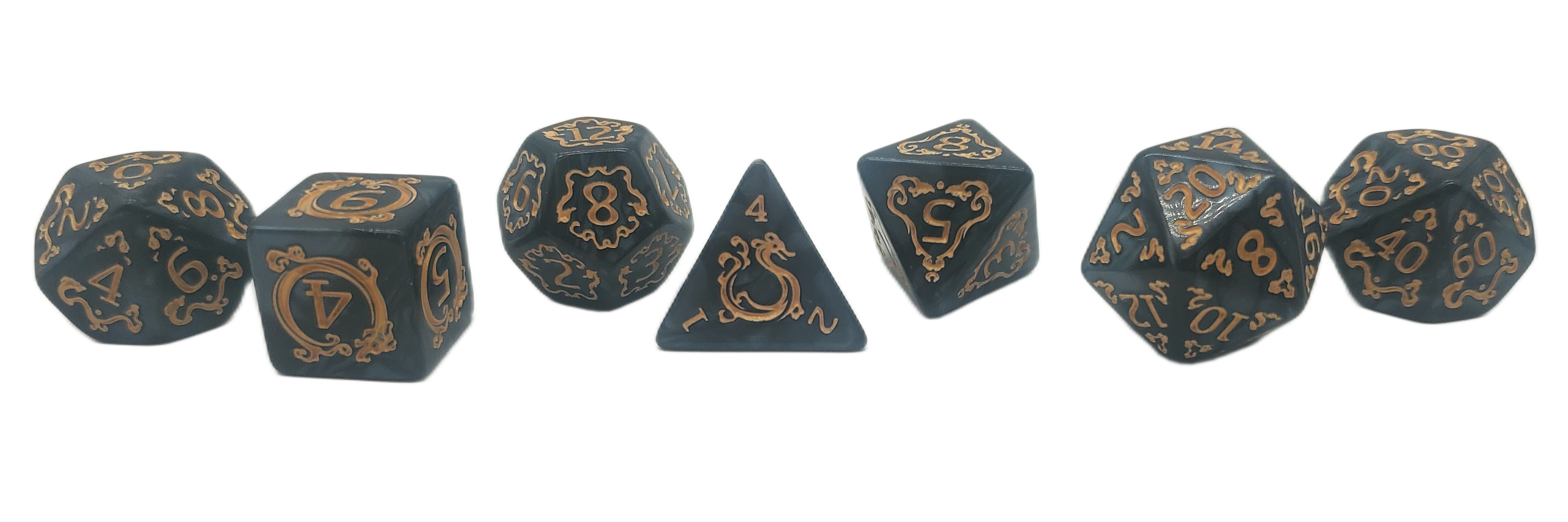 DnD RPG Dice Set: Rune Dice - Coiled Serpent - Black w/ Gold