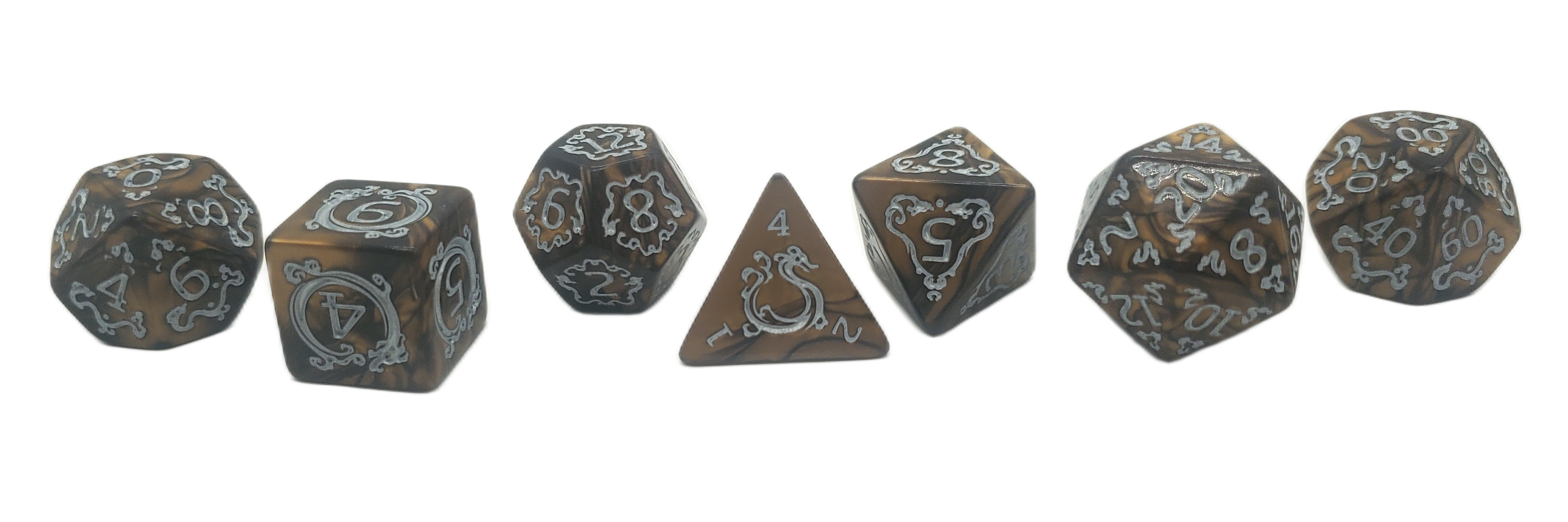 DnD RPG Dice Set: Rune Dice - Coiled Serpent - Tan w/ White