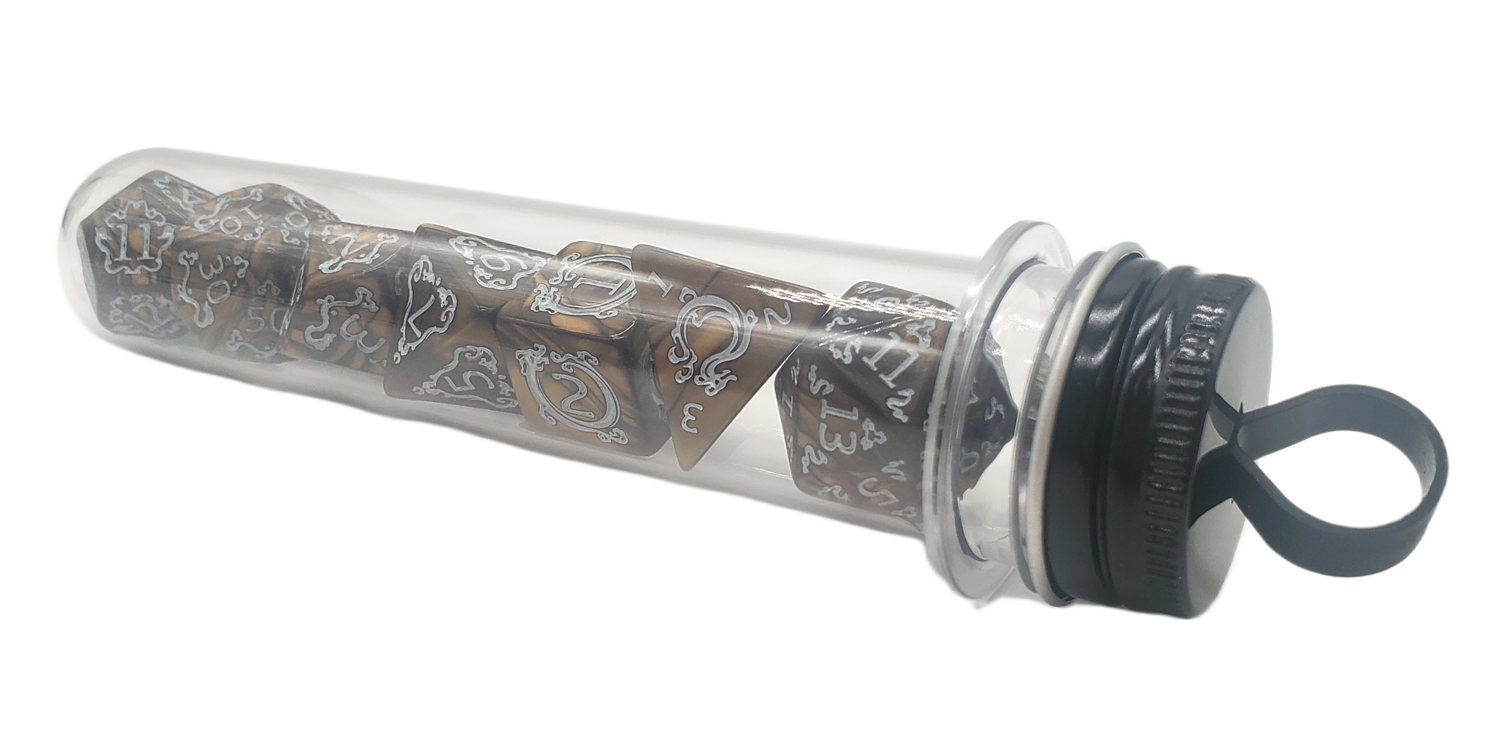 From Old School Dice comes the DnD RPG Dice Set: Rune Dice - Coiled Serpent - Tan w/ White. These dice are a testament to the brand's commitment to high-quality and unique RPG accessories. As a favored choice among tabletop game enthusiasts, this set is sure to be the highlight of your next gaming session. Made with precision and checked by hand, these dice offer an unparalleled gaming experience. They're not just dice, they're an invitation to create unforgettable stories and adventures.