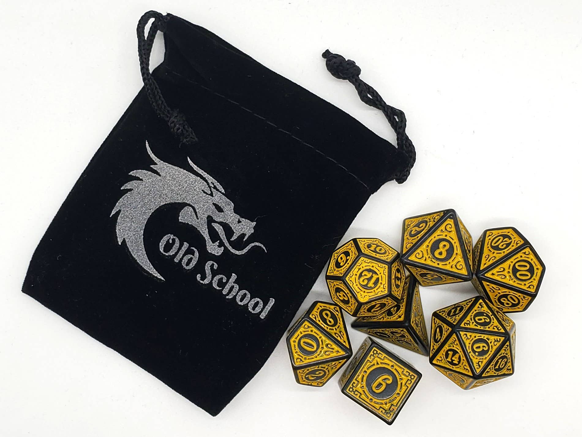 Our DnD RPG Dice Set: Rune Dice - Magical Runes - Yellow from Old School Dice enhances your RPG experience. These magical runes, in striking yellow, add a unique touch to your Dungeons & Dragons sessions. Old School Dice is renowned for creating high-quality, unique RPG accessories that stand out. These dice, like all our products, are meticulously hand-checked to ensure superior quality. Add some magic to your next gaming session with our Rune Dice Set.