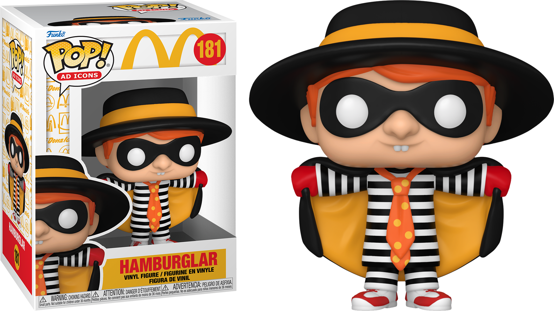 This Hamburglar Pop! Vinyl Figure measures approximately 3 3/4-inches tall. Comes packaged in a window display box.
