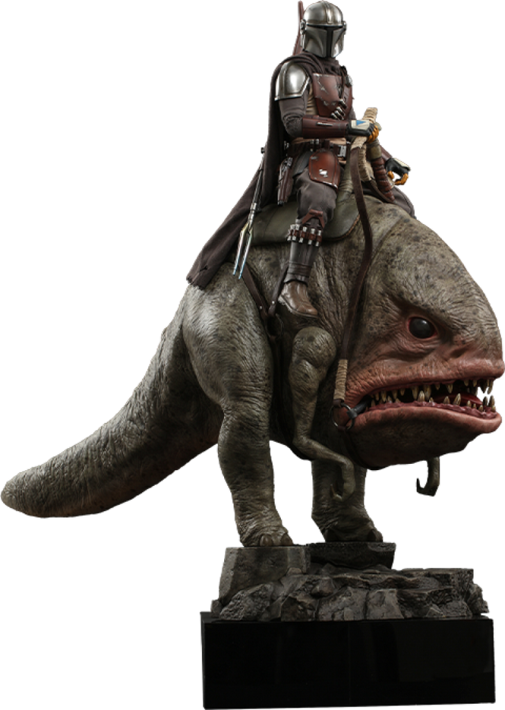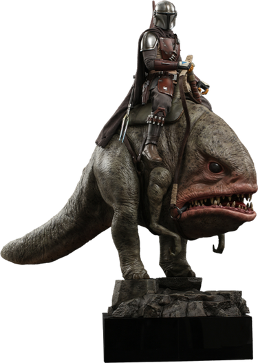 The highly accurate Blurrg is skillfully developed based on the appearance of the creature in The Mandalorian. Standing at approximately 37cm tall (43cm with base) and 60cm in length, it features a greatly detailed head and body, articulated arms, a saddle, and a rocky theme display stand!