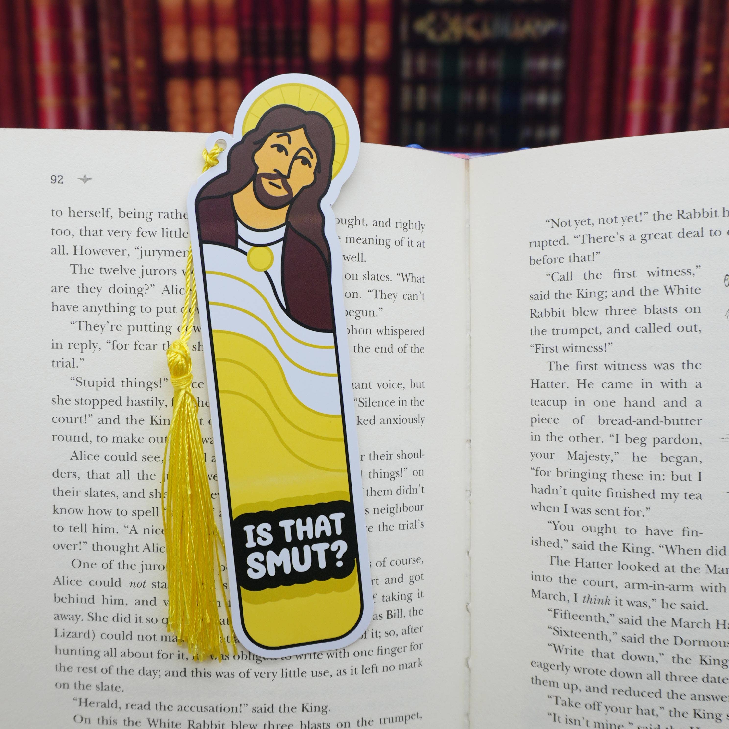Jesus is always watching, and now he’s watching you read with our “Is that smut?” bookmark. This funny design features the Lord and Savior creepin’ on what you’re reading. But for Christ’s sake, mix it up a little bit. He’s tired of watching you read the same tropes all the time.