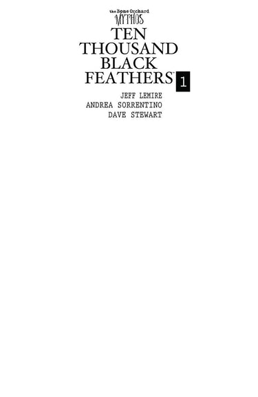 TEN THOUSAND BLACK FEATHERS is the newest entry into THE BONE ORCHARD MYTHOS from LEMIRE & SORRENTINO! This universe will feature self-contained graphic novels and limited series about the horrors waiting to be discovered within the Bone Orchard.