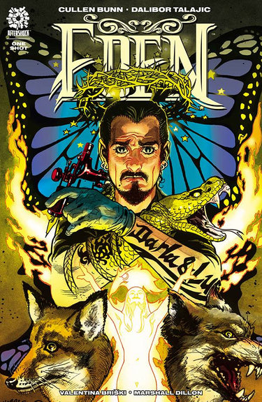 A prestige format "One-Shock" featuring top creative talent, EDEN is a harrowing hor-ror/romance conceived and written by Cullen Bunn (PIECEMEAL, DARK ARK, KNIGHTS TEM-PORAL, BROTHERS DRACUL), drawn by Dalibor Talaji? (WITCH HAMMER, RELAY) and colored by Valentina Briški. Be prepared to accompany the notions of love, creation and heartbreak to terrifying places.