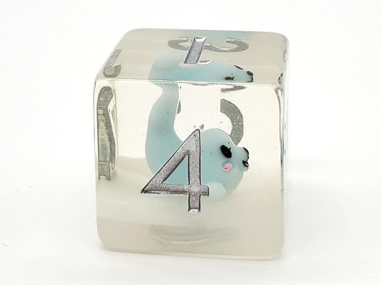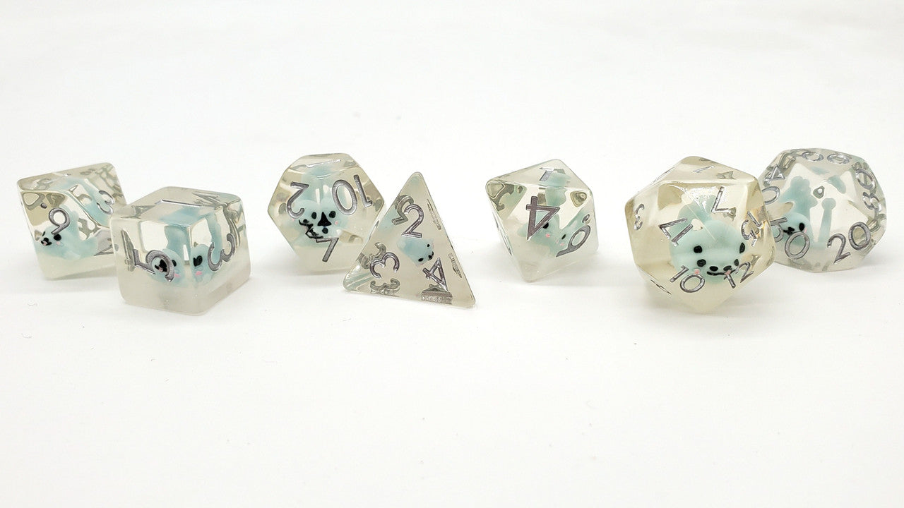 Old School 7 Piece DnD RPG Dice Set Animal Kingdom Baby Seal Light Blue