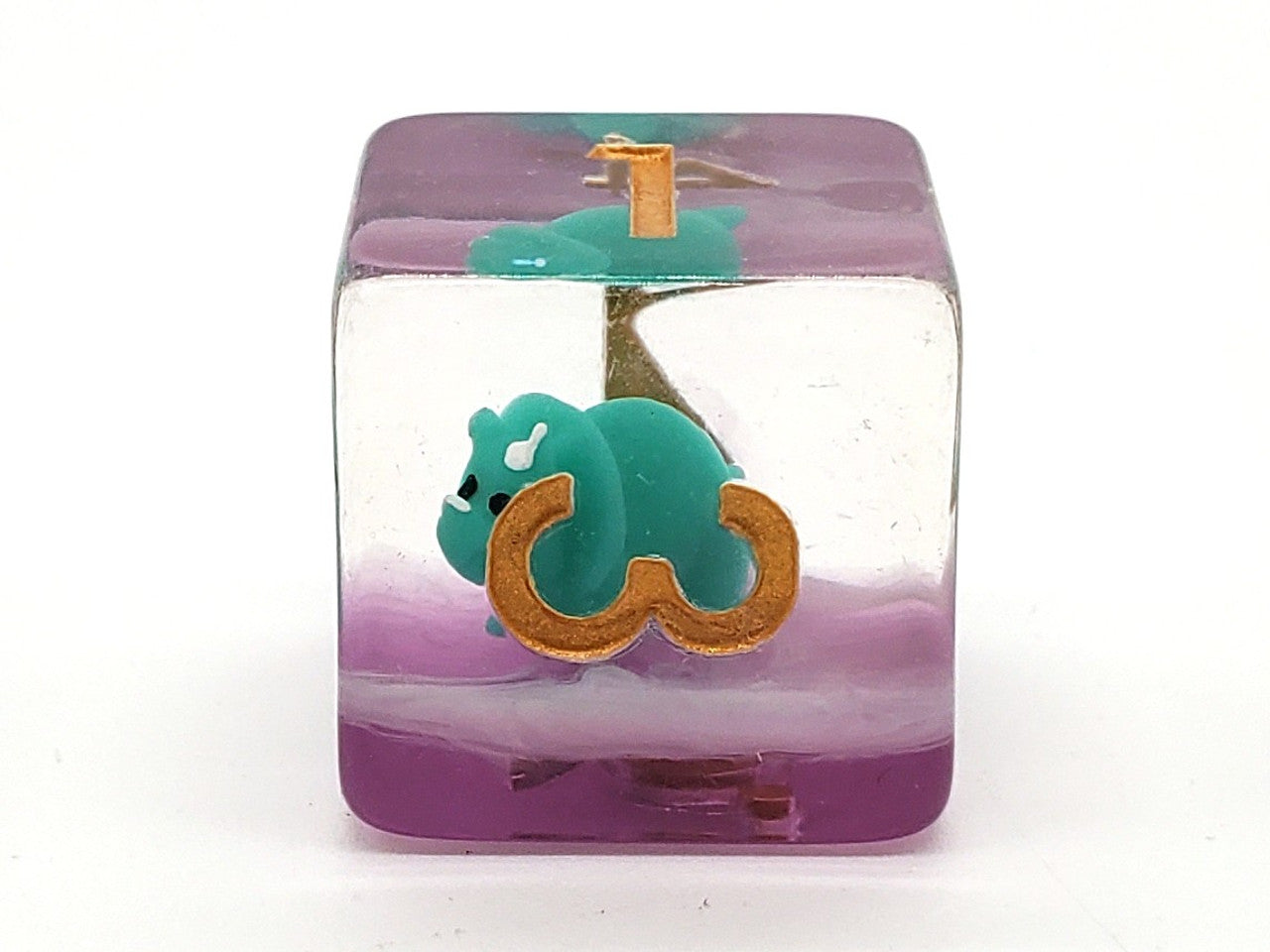 Old School 7 Piece DnD RPG Dice Set Animal Kingdom Baby Triceratops Green