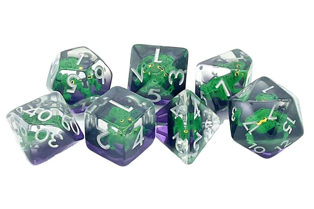 Old School 7 Piece DnD RPG Dice Set Animal Kingdom Toad Green w/ Purple - State of Comics Old School 7 Piece DnD RPG Dice Set Animal Kingdom Toad Green w/ Purple - State of Comics
