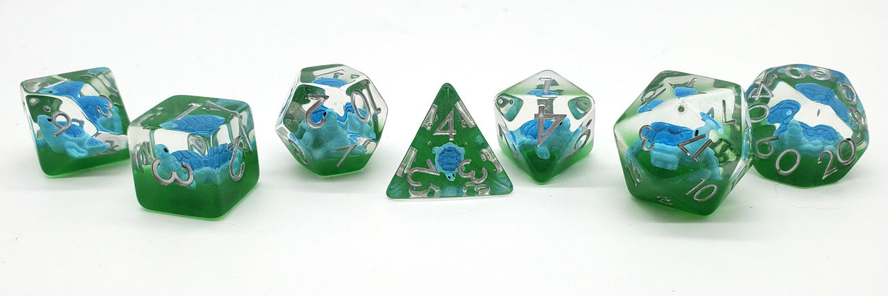 Old School 7 Piece DnD RPG Dice Set Animal Kingdom Turtle Blue w/ Green - State of Comics Old School 7 Piece DnD RPG Dice Set Animal Kingdom Turtle Blue w/ Green - State of Comics