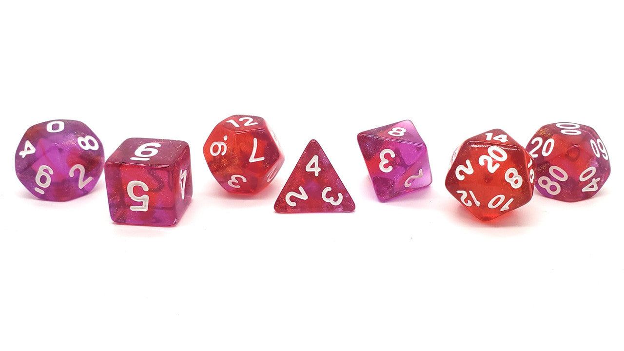 Old School 7 Piece DnD RPG Dice Set Galaxy Cherry Pie Sky