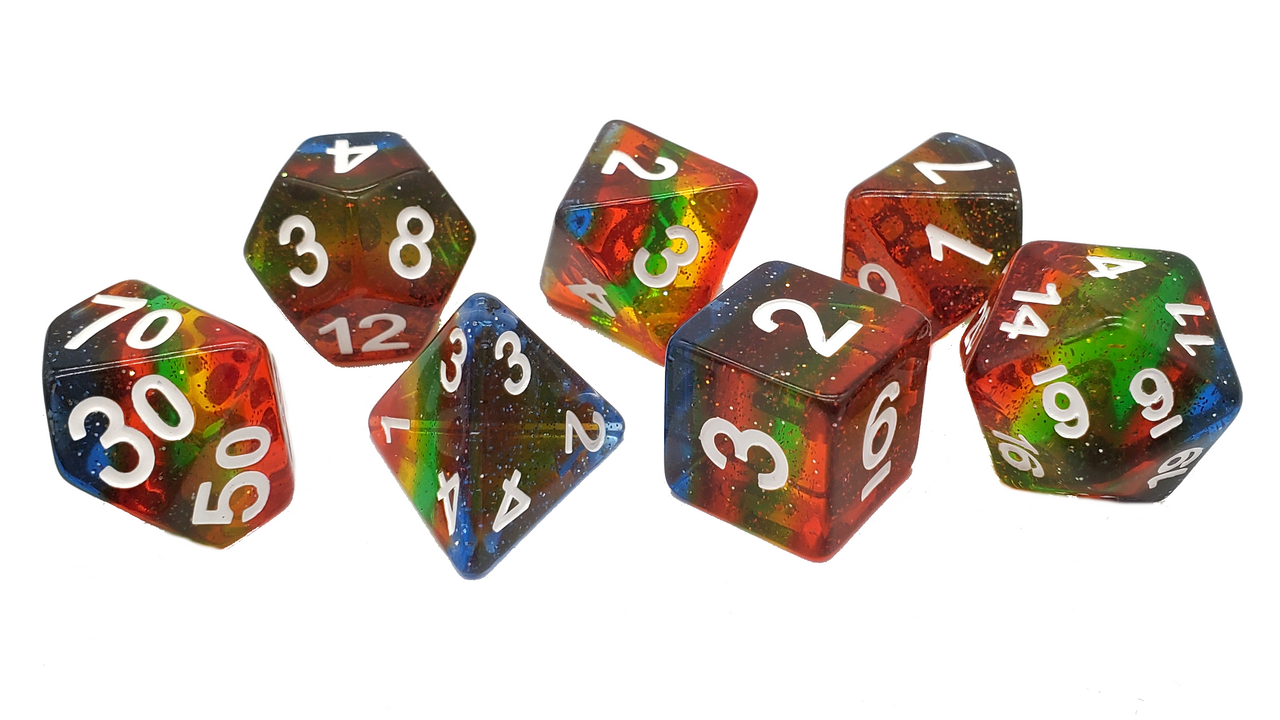 Old School 7 Piece DnD RPG Dice Set Gradients Translucent Glitter Rainbow