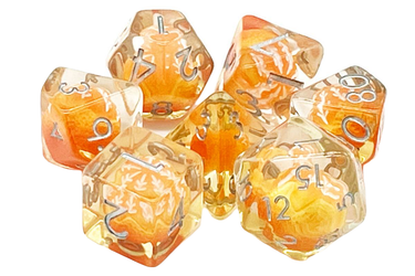Old School 7 Piece DnD RPG Dice Set Infused Orange Yum!