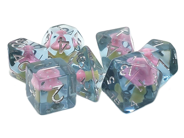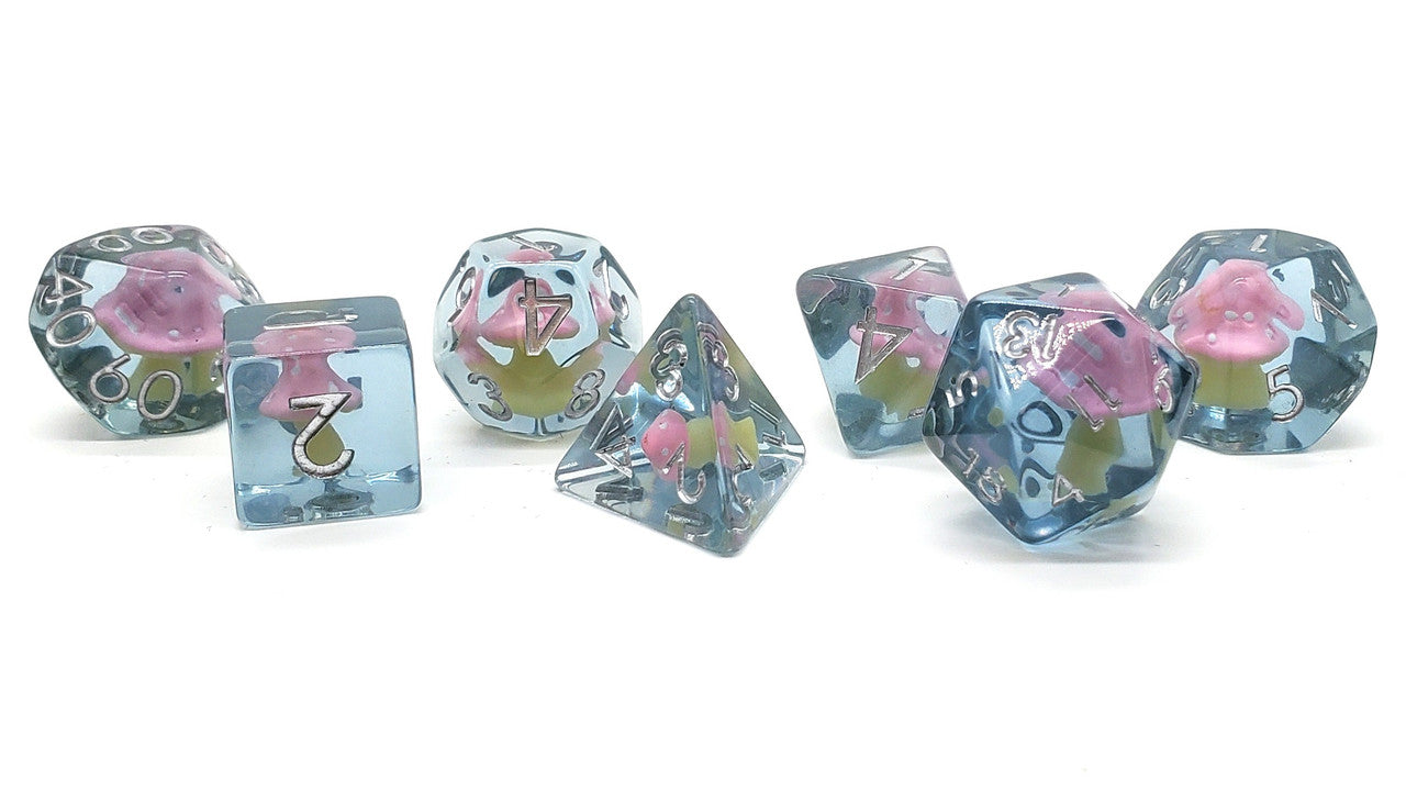 Old School 7 Piece DnD RPG Dice Set Infused Pink Shrooms