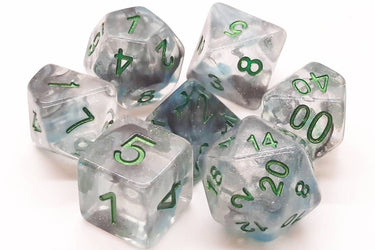 Old School Dice & Accessories carries a wide range of premium & specialty dice. Each fabulous set is hand checked to make sure that you are getting the highest quality. Made of a strong resin blend, these dice have colors that are clear and bold. Our dice sets work great for RPG's such as DnD, Pathfinder, Call of Cthulhu and other games. Each RPG 7-dice set includes all of the standard polyhedral dice.