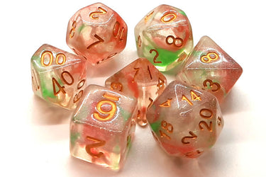 Old School 7 Piece DnD RPG Dice Set Luminous Rose Garden