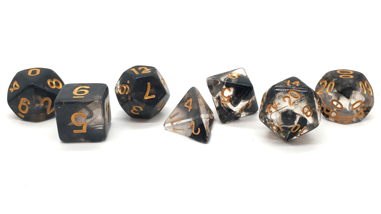 Old School 7 Piece DnD RPG Dice Set Nebula Black