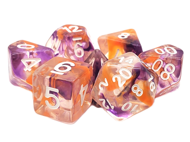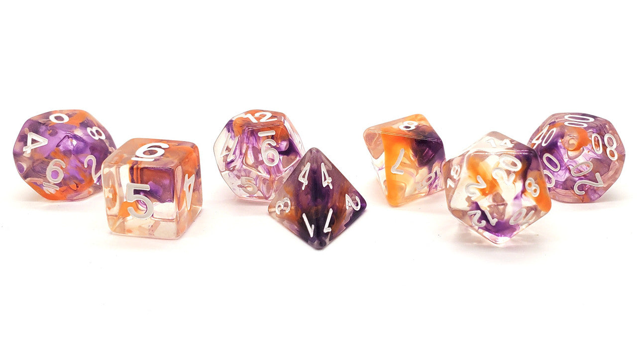 Old School 7 Piece DnD RPG Dice Set Purple & Orange