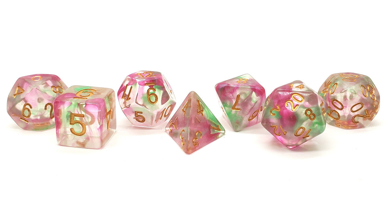 Old School 7 Piece DnD RPG Dice Set Rose Red & Green