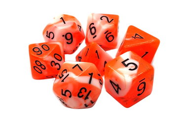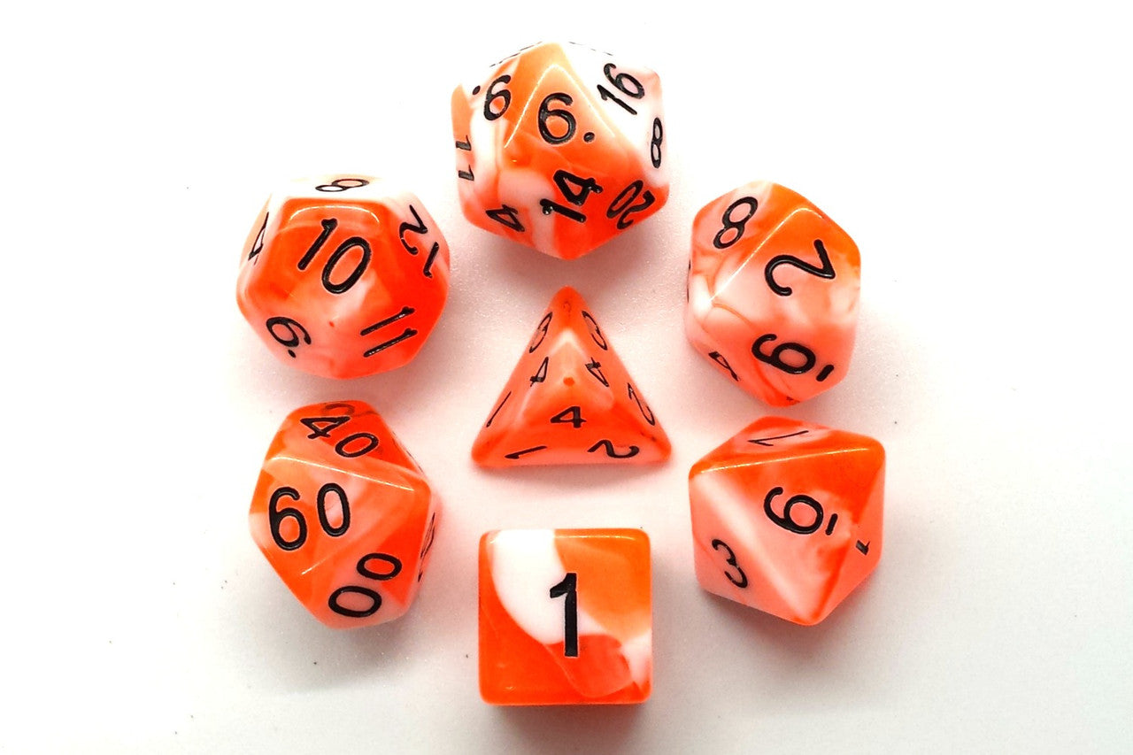 Old School 7 Piece DnD RPG Dice Set Vorpal Orange & White w/ Black