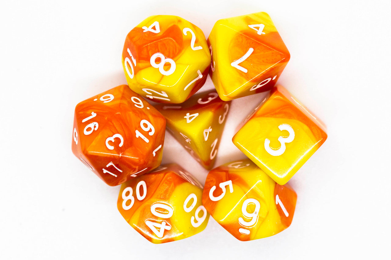 Old School 7 Piece DnD RPG Dice Set Vorpal Orange & Yellow